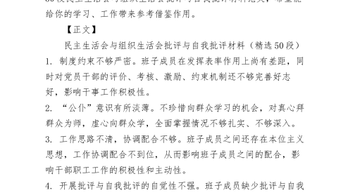 生活会材料