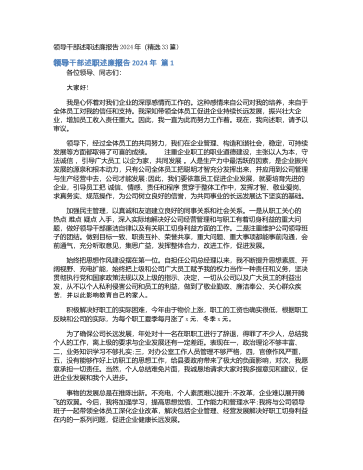 领导干部述职述廉报告2024年(精选33篇)干部述述廉告领导职报2024年篇1 各位领导、同志们: 大家好! 我是心怀着对我们企业的深厚感情而工作的。这种感情来自公司对我的培养,来自于全体员工对我的信任和支持。我深知带领全体员工促进企业持续长远发展,振兴壮大企业,增加员工收入责任重大。因此,我一直为此而努力工作着。现在,我向述职,请予以审议。 领导下,经过全体员工的共同努力,我们在企业管理、构造和谐社会,稳定,可持续 发展等方面都取得了可喜的成绩。注重企业职工的职业道德建设,主张以人为...