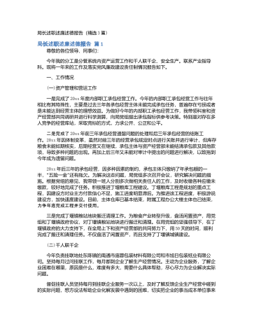 局长述职述廉述德报告(精选3篇)局述述廉述德告篇长职报1 尊敬的各位领导、同事们: 今年我的分工是分管系统内资产运营工作和千人联千企、安全生产。联系产业指导科。现将一年来的工作及落实党风廉政建设责任制情况报告如下。 一、工作情况 (一)资产管理和营运工作 一是完成了20xx年度内部职工承包经营工作。今年的内部职工承包经营工作与往年相比有其特殊性,主要是过去三年各承包经营主体未能完成承包任务,普遍存在亏损或者是未能达到经营主体的理想效益。为做好今年的内部职工承包经营工作,我带领科室和资产...
