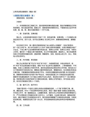 公务员述职述廉报告(精选6篇)公述述廉告篇务员职报1 尊敬的领导,各位同事: 大家好! 20__年来到我们的工商局工作,面对领导和同事对我的关爱,我也不断鞭策自己尽快转变角色,努力适应新环境,勤奋工作,报答领导和同事的关注。下面我对自己这半年来在德、能、勤、绩、廉五方面的情况一一作下汇报。 一、德:忠诚可靠,实事求是 “”我认为,公务员的德可体现为忠实二字,即忠诚可靠、实事求是。一个合格的公务员应该忠于党,忠于人民,忠于自己的事业;在日常工作中,更要做到实事求是,谨慎踏实。 “”在半...