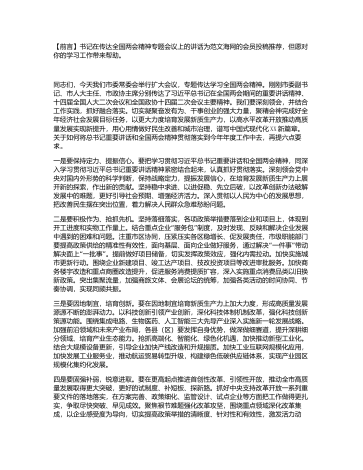 20xx年在深入学习贯彻总书记重要讲话和全国两会精神会议上的讲话[摘要]20xx年在深入学习贯彻总书记重要讲话和全国两会精神会议上的讲话为范文海网的会员投稿推荐,但愿对你的学习工作带来帮助。20xx年在深入学习贯彻总书记重要讲话和全国两会精神会议上的讲话同志们,今天召开全市领导干部会议,传达学习全国两会精神。十四届全国人大二次会议和全国政协十四届二次会议是在实现“十四五”规划目标任务关键之年召开的一次重要会议。大会期间,总书记站在党和国家事业全局的高度,就发展新质生产力、推动高质量发展等发表习列...