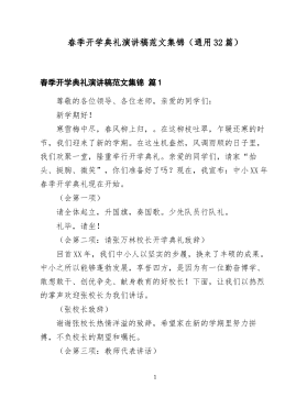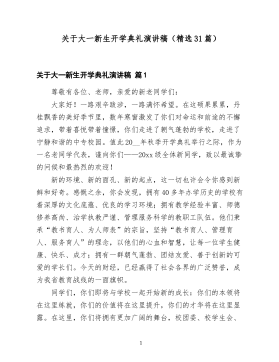 初中开学典礼教师演说稿词-教师演讲稿(精选31篇)初中开学典礼教师演说稿词-教师演讲稿篇1尊敬的各位领导、老师、同学们:大家早上好!当清晨的第一缕阳光照耀在我们充满无限生机和活力的校园时,又一个充满激情与挑战的时段即将开始了!我们迎来了新的一天,也迎来了一个更加全新的20xx!“一年好景君须记,正是橙黄橘绿时”,新的学期又开始了,在我们每个人的面前都展开了一张新白纸,那么我们将如何在这张白纸上画出人生的又一幅精彩的画卷呢?如果同学们已经开始思考,那么你就已经长大了。有孩子曾问我说:“白老师,你是怎么定位‘有理想、有道德、有纪律、有文化’的四有新人的,我们该如何而为之?”今日,我荣幸地代表全体老师谈谈发自肺腑的心声。纵观学习之路。自汉代以来,两千多年的历史告诉我们,学习是一件苦差事。所谓“学海无涯”呀!但这却是人们对自由、文明的追求,还有自我素质的提高和自我价值的实现。我们六年级和九年级的同学回首往昔,在小学和初中一路风尘、一路凯歌,是收获的过程,更是吃苦的过程。你们即将面临人生的第一次大的考验——小升初和中考。面临着它,一些同学已经立下挑灯夜读,用尽全力拼搏的志向。这些同学勇于承担青少年最重大1的学习责任,是我们所有同学的榜样!在学习的道路上,我们难免有意志消沉的时候,有动力不足的时候,有拖拉偷懒的时候,这是正常的。我们要不断地给自己找到新的力量。这力量来自于自己的理想,来自于有益的榜样,来自于读懂了在工作中辛劳的双亲,来自于读懂了在讲桌旁燃烧自己青春之烛的老师们。坚持住,不断给自己加油!“雄关漫道真如铁,而今迈步从头越”。这,就是理想,“中流击水,浪遏飞舟”。亲爱的同学们,你们准备好了吗?每个人都要问一下自己:我有理想吗?我的理想是什么?一个人有了明确的理想,就像漂泊在茫茫大海中的扁舟,终于找到了正确的航向;一个人有了美好的理想,就像风沙四起的荒漠中出现了一片绿洲;一个人...