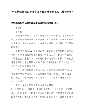 寒假放假校长在老师会上的优秀讲话稿范文(精选9篇)