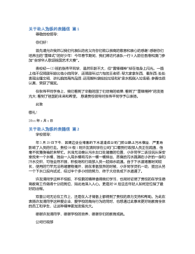 工表信篇员扬汇总1 亲爱的TATA十一厂员工及家人: 金虎抱财归,玉兔迎春来,新年伊始,万象更新!弹指间,我们迈过了无比难忘和富有成效的20xx年,你们也即将离开公司奔赴家乡,聚见离别快一年的亲朋!离别之际,我怀着无比激动的心情写下这封感谢信,给兄弟姐妹们送送行,告告别: 20xx年经过全体员工的共同努力,十一厂圆满完成了全年的目标,在支持创建八厂的大环境下,许多新加入的员工很快融合到了团队中,公司依然稳健增长.年终十一厂被总公司授予一等奖!20xx年,我们经历了无数的历练,收获了成长、快乐、幸福和满足。我们十一厂的发展和壮大离不开你们的默默支持和无私奉献,在这里我向全体员工道一声:你们...