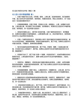 小班幼儿评语(通用34篇)小班幼儿篇评语1 浩,你是个乐于助人、待人热情。和刚开学相比,你无论在生活上还是学习上都有了明显的进步,真棒!而且你总能在别人有困难的时候主动帮助他们,真是个有爱心的孩子。只是老师有个小小要求:玩游戏的时候不能和小朋友抢玩具,要学会爱护玩具,能做到吗?新的一年里老师祝你新的一年身体棒棒,开心每一天! 琳,聪明能干的你,会做的事情可真多:学会很多儿歌、歌曲,会自己穿鞋,能自己上厕所,还自己动手吃饭,可棒了,你还是老师的好帮手,搬椅子、收拾玩具、发糖果、拿东西,每件事情做得又快又棒。希望新学期你能高高兴兴上幼儿园,开开心心过每一天! 嘉,你是个天真可爱的小男孩,平时...