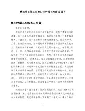 精选范文转正思想汇报(精选29篇)精选范文转正思想汇报篇1敬的党组织:您好!20年x月x日,是我终身难忘的日子,经党组织的批准,我实现了梦寐以求的愿望,成为一名光荣的中国共产党预备党员。一年来,我在这个团结务实、温暖友爱的集体里,亲身感受到了组织的关怀,团结奋斗的快乐。在组织的培养教育下,我认真按照党员的标准去做,加强政治思想学习、对工作和学习精益求精。在xx年xx月xx日到来之际,我郑重向党组织提出转正申请。为了便于党组织对我的考察,现将自己预备期内的思想、学习、工作等各方面情况向党组织汇报:一、思想方面:作为一名教师,我能全面贯彻执行党的教育方针,注意培养自己良好的师德,关心和爱护每一位学生,做他们学习和生活中的良师益友,时时处处为人师表;作为一名预备党员,在思想上,时刻能以一个优秀党员教师的标准来严格要求自己。二、在工作方面:一年级以来,我担任二、六年级的音乐课和学校鼓号队训练教学任务。教学中不断领悟新课程标准,以新思路、新方法来指导1自己的工作,认真备课、上好每一节常规课。在教育教学工作上,我利用学科特有的力量来教育学生的思想,尊重学生的人格,让学生独立,让学生表现自己的音乐才能,给予他们充分的表现欲。课堂上严格要求,注重学生学习习惯、学习方法的培养和积极性的调动,让音乐真正成为他们的朋友,让每个学生都爱好音乐,喜欢音乐。在教学业务方面:为了提高自己的教学认识水平,适应新形势下的教育工作。我坚持参加教学教研活动,不断汲取他人的宝贵经验以此来提高自己的教学水平。三、在生活方面:我始终坚持以正式党员的标准严格要求自己,用党纪法规约束自己,用入党誓词检验自己,用“立党为公,执政为民”的思想激励自己,努力做社会主义新人,做人民的贴心人,自觉抵制拜金主义、享乐主义和极端个人主义思想的侵蚀,永葆共产党员的先进性。四、缺点和不足:一年来,我虽然取得了一些进步,但我深知自己还存在一...