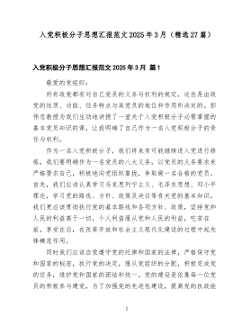 入党积极分子思想汇报最新(通用33篇)入党积极分子思想汇报最新篇1尊敬的党组织:艰苦奋斗,勤俭节约是中华民族的传统美德,是我们党的传家宝。也是新形式下加强领导干部作风建设的一个重要方面。“艰难困苦,玉汝于成“,“居安思危,戒奢以俭“,中华民族历年来勤奋勇敢。不畏艰苦着称我们党史靠艰苦奋斗成长壮大,成就伟业的,也是靠勤俭节约发展事业,建设国家的。艰苦奋斗是我们党的优良传统和作风,是我们党保持同人民群众血肉联系的一个重要法宝。今年来,享乐主义,拜金主义在我们队伍中有所滋长讲排场,比阔气,挥霍浪费的现象还大量存在。有的甚至对这一美德不以为然,认为不合时宜。殊不知,现如今,虽然我国的经济总量扩大了,但我国仍处于并将长期处于社会主义初级阶段。国家建设需要办的事还很多。我们必须坚持厉行节约,反对浪费的方针,必须有长期艰苦奋斗的思想准备,作为一个积极分子,党的后备军我有义务将这一美1德这一优良传统发扬下去由党组织安排在党员小组长的带领下我们纷纷写下勤俭节约,倡议书等。多种形势的倡议活动,期间我们曾多次在校食堂等公众地方进行调查研究结果表明,勤俭节约在同学们乃至有些领导的意志力尚不存在。省菜省饭随处可见,不关水龙头现象大量存在。尤其是过分浪费电资源现象,在我们身边随处可见,我不禁心生感叹,记得小时候我们学的第一首唐诗便是,谁知盘中餐,粒粒皆辛苦。我们从小就被教育,节约要从小处着手,从一粒米一滴水做起,然而现在的社会中存在的现象真令我陌生,没想到老祖宗留下的千年传统和良好美德,竟然被那些所谓的虚荣心理和消费观念所代替。作为大学生的我们,应该大力发扬勤俭节约的精神,严格执行各种节约制度。努力培养自己的节约意识,大到压缩到各种经济开支,小到一粒粮食,都要树立勤俭节约关荣铺张浪费为耻的观念。勤俭节约从我做起,从身边小事做起。今天,我提倡:让我们积极行动起来。牢固树立节约意识。让节约成为习惯,坚持从...