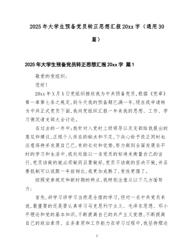 2025年大学生预备党员转正思想汇报20xx字(通用30篇)