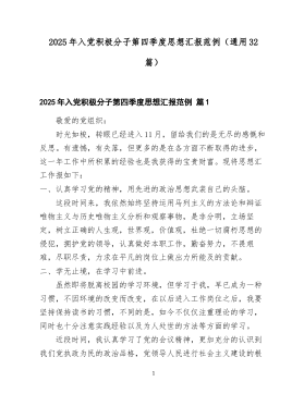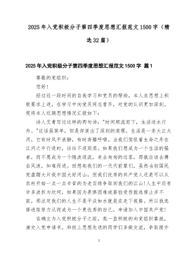 2025年入党积极分子第四季度思想汇报范文1500字(精选32篇)