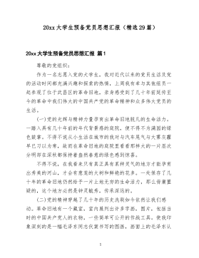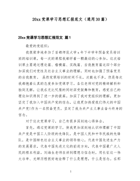 20xx大学生入党积极分子思想汇报范文模板(通用30篇)20xx大学生入党积极分子思想汇报范文模板篇1敬爱的党组织:自从进入XX大门开始算起,已经两年半的光景了!在这一年的学习、生活中,我在各方面严格要求自己,努力工作,虚心学习,促使自身全面的发展进步。20xx年5月,经过党组织批准,我光荣地成为一名入党积极分子。近段时间以来,我在党组织的关心和帮助下不断进步和成长,我充分感受到党组织这个大家庭的团结和温暖。在此期间,我也努力改正和弥补自己的不足。在工作和生活中严格安装党员的标准来要求自己,认真履行党员的义务。通过大家的帮助以及自己的努力不断充实自己和完善自己。在大三第一学期即将结束之时,通过党校的培训,通过学习党的先进思想,通过自身的努力求知,谨将个人一年来的基本情况向党组织作一个汇报,请党组织教育指正。在政治思想上,我主动加强政治学习,利用课余时间认真学习党史和党章,了解我们党的光辉奋斗史,从而更加珍惜现在的生活,坚定正确的政治方向;并经常看电视新闻、看报纸、阅读时事期刊以及时学习党中央颁布的决策和决议,在思想上和党组织保持高度一致。我认真学习并体会“三个代表”重要思想的内涵;深刻理解了党中央提出的“科学发展观”的指导思想;学习了中央1两个《条例》对党员的要求。通过学习,我认识到,我们党一直把全心全意为人民服务作为党的宗旨,把实现和维护最广大人民群众的根本利益作为一切工作和方针政策的根本出发点,党的一切工作或全部任务,就是团结和带领人民群众为实现这些利益而奋斗。同时,我也加强学习领悟加强党的执政建设的意义和重要性,把这种思路和自己的工作有效地结合起来,调整自己的工作方法并提高自己的工作效率。通过对理论知识的学习,树立正确的牢固的世界观、人生观,在社会不断发展的过程中的价值观,加强自己的责任感和使命感,提高自己的工作动力以及学习和生活的动力。通过这一系列的学习,我提高了自...