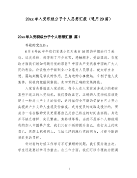 20xx年入党发展对象思想汇报范文(精选31篇)20xx年入党发展对象思想汇报范文篇1敬爱的党组织:不久前,我在一次支部会议中,我从一位普通学生,光荣地被列为发展对象。这对于我是一个大跨越,这意味着一个更高的要求与希望,也就是说要在实践中不断的加强党性的锻炼与修养,积极发挥先锋模范作用,不仅要在组织上入党,更应该从思想上入党.。我觉得党员与群众的区别就在于党员具有党员意识。作为一名中国共产党员,首先要有坚定的政治原则,我个人认为自己的政治原则是坚定的,但思想意志还存在动摇,自己的信念立场还不够坚定。其次,党员应该树立密切联系群众,依靠群众的观念。这一点我做的也不很到位,我对自己的认识就是,有时太过热情,有时又稍有消沉。再者,党员是要有高度的组织纪律性,我也是一直严格要求着自己的,最为一名合格的公民,遵纪守法我是坚持做到的!最后,就是要继承和发扬党的优良传统,为党的事业而奋斗,忠于党的事业。我觉得我现在能做的,就是在学习工作和社会生活等方面为同学们作出表率,用自己的行动和工作影响带动周围的同学共同进步.“全心全意为人民服务”,这句话听起来好似很平常,可这平常里却包涵了全党上下的精神和决心。封建社会时期,人民处1于社会的最下层,统治者不但没有认识到他们的重要性,还剥削劳役他们。而我们的共产党了先人的经验和教训,承认人民群众才是推动社会进步与发展的最根本力量,更是把“全心全意为人民服务”作为党的根本宗旨。在社会中,人类赖以生存和发展的物质生活资料来自广大的人民群众,先进的科学技术及艺术作品也起源于人民群众,归根到底,决定人类命运的就是人民群众。正如毛泽东主席曾讲的:“人民,只有人民,才是创造世界历史的动力。”党的最终奋斗目标是实现共产主义,党的最低纲领是全面建设小康社会,这些都说明党的奋斗目标和最终目的都是围绕着人民的利益的。为了实现共产主义,我们的先辈抛头颅洒热血,用自己的身躯...