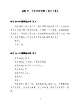 寻物启事英语怎么写(通用6篇)寻物启事英语怎么写篇1LostMay15thIleftagreenschoolbaginthereading-roomontheeveningofMay14th.TherearetwoEnglishbooks,apencil-box,anMP3playerandthekeytothebikeinit.NowI’mveryworriedaboutit.WillthefinderreturnittoLiXiaofClass1,Grade3?Thanksalot!LiLeiFoundJune26thIfoundacellphoneontheplaygroundonJune25th.Anyonewholostit,pleasecometoClass3,Grade3ofNo.2MiddleSchoolorcallon139.ZhouHong寻物启事英语怎么写篇2寻物启事1本人不慎于20xx年6月17日上午9时在学校操场上遗失黑色HTC手机一部(最好写上是什么型的)。手机为长方体,其中一个角有缺口(一定要详细的写明有什么特征)。望拾到者速与本人联系。不胜感激。联系手机:。此启xx班:小明XX年XX月XX日寻物启事英语怎么写篇3寻物启事3月23日晚8∶00左右,在淮河路一轿的车上遗失一个公文包,内有金额为5万的存折一份、派遣证一个及它物,有拾到者请与失主联系,失主愿重金酬谢.联系电话:田先生916-8817张先生寻物启事英语怎么写篇4本人今晚(3月14日晚9点—10点)与朋友在学校操场锻炼时,于操场双杠处丢失一女式单肩挎包,此包一面为镶满鱼鳞式的小圆晶片,在光照耀下比较闪,另一面为黑色;包内含有校园卡、宿舍钥匙及家中钥匙、笔袋(笔袋内有身份证、医保卡及优盘等物品),包内还有其他贵重物品,希望有看到拿此包的.人的2同学或看到此包的同学联系(张同学),若有拿错此...