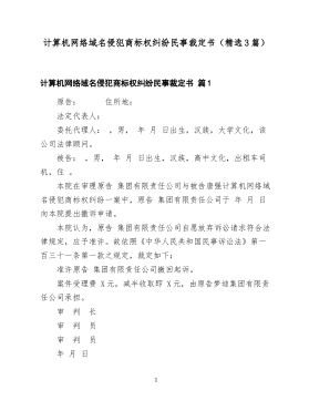计算机网络域名侵犯商标权纠纷民事裁定书(精选3篇)