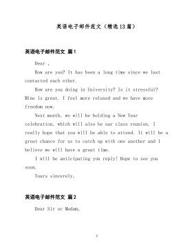 关于邮件回复范文(精选7篇)关于邮件回复范文篇1先生:五月二十日有关第645号定单的来信收到。得知错运货物,本公司感到抱歉。正确的货物已安排空运,应于一周内运抵。有关文件将加函寄上。烦请暂存错运给贵方的货物。如有任何疑问,欢迎与本公司联络。对于是次错失,谨再次表示歉意。销售部主任x年5月20日市人民政府办公厅关于临时工、合同工能否执罚问题请示的复函市政办函[]40号市市容环境卫生管理局:你局《关于明确临时工、合同工能否执罚问题的请示》收悉。现复函如下:《中华人民共和国行政处罚法》于**年10月1日起执行。该法对行政执法主体及执法人员作出了明确而严格的规定。按照行政处罚法和国务院《关于贯彻实施〈中华人民共和国行政处罚1法〉的通知》,从今年10月1日起,合同工、临时工再不能从事行政处罚工作。……你局应按照上述精神,对全市市容卫生执罚人员进行清理,理顺执罚体制,保证行政处罚法的贯彻实施,促进市容卫生管理工作。此复关于邮件回复范文篇2DearMr/Ms,IrepresenttheW/PElectronicsCompanyinDallas,andwillbeinKunmingfromnextMondaytoFriday,(October5-9).Ishouldliketocallonyoutodiscussournewmonitor.Would0930hoursonTuesday,October6beconvenient?IshallbeinBeijing,attheGreatWallHotel,fromTuesday,September29,untilSunday,October4,whereamessagewillreachme.Ifthedayisnotconvenient,willyoupleasesuggestanother.Yoursfaithfully尊敬的先生/小姐2...