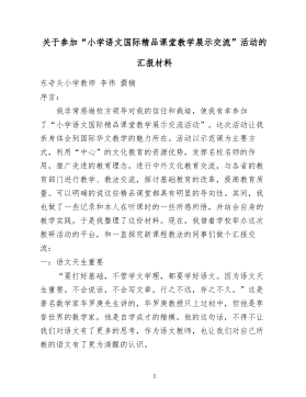 关于参加“小学语文国际精品课堂教学展示交流”活动的汇报材料