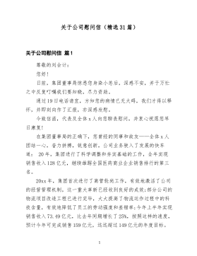 给家属的慰问信参考(精选29篇)给家属的慰问信参考篇1尊敬的员工家属您们好!春节即将来临,在这喜庆的日子里,请允许我以浙江新光饰品有限公司郑州门市负责人的名义,向您们致以节日的祝贺和诚挚的问候!同时,我也给您带来我们新光集团董事长周晓光女士最真诚的感谢和最美好祝愿!感谢您的家属——我们新光忠实的员工。感谢他(她)在过去的时日里,勤勤恳恳、任劳任怨!感谢他在公司的营销系统不同岗位上所做的不懈努力!在公司的员工都知道,过去的20__年是我们新光公司企业转型同时又全面改革,迅速发展,参与激烈市场竞争的一年,也是接受严峻挑战和考验的一年。一年来,我们经历了许多不利因素,我们可以说是一波接着一波,靠着大...