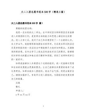 大学生入团志愿书格式300字(通用3篇)大学生入团志愿书格式300字篇1敬爱的团支部:我志愿加入中国共产主义青年团,因为中国共产主义青年团是先进的群众组织,它能够帮助带领青年向着健康的方向发展,能够使青年的思想、文化、学习提高得更快,在各方面起积极作用。做同学的模范。中国共产主义青年团是青年中的先锋队,是接受共产主义教育的学校,是中国共产党忠实的后备力量,在它的帮助教育下,我们能够成为热爱祖国、忠于人民,有知识、守纪律,体魄健壮,勤劳勇敢,朝气蓬勃,不怕任何困难的共产主义接班人。所以,我志愿加入中国共产主义青年团。我决心,加入共青团后,真正起到共青团员的先锋模范作用,努力学习,积极帮助和团结同学、尊敬老师,关心班集体的各项工作,争做班集体的“操心人”,协助班主任老师做好班集体的工作,按时交纳团费,积极参加团组织的活动。总之,自己要事事严格要求自己,在各个方面起带头作用,不辜负团组织和老师对自己的期望,做一个名副其实的共青团员。如果团组织暂时没有批准我的申请,我也不灰心丧气,将继续努力,积极向团组织靠拢,向好的同学看齐,努力克服自己身上存在的不足,争取早日加入团组织。1此致敬礼!申请人:大学生入团志愿书格式300字篇2敬爱的党组织:我作为一名XX岁的(职业),志愿申请加入中国共产主义青年团。中国共产主义青年团(以下简称共青团或团组织)是中国青年的先进组织,是中国共产党的有力助手和后备军,是中国青年学习马列主义、毛泽东思想和邓小平理论的大学校,是培养和造就"四有"青年的革命熔炉,是建设民主、文明、富强的社会主义祖国的主力军。它的最终目的,是在中国共产党的领导下,实现共产主义的社会制度。1919年五四运动以来,中国青年为争取民主自由,向压在中国人民头上的"三座大山"进行了长期艰苦卓绝的斗争,但都失败了。1921年后,在中国共产党的领导下,中国人民找到了马克思主义的真理,并将之与中...