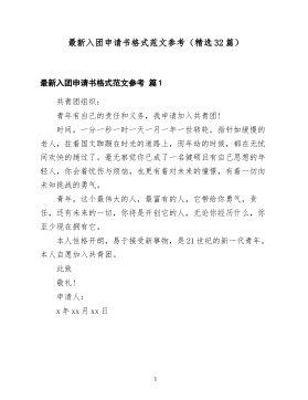 最新大学入团申请书范文(精选29篇)最新大学入团申请书范文篇1尊敬的团组织:我叫,男,现年18岁,就读于大一3班。我在校学习期间,学习认真,成绩优良,团结同学,助人为乐,关心集休,操行表现优秀,曾荣获“校园之星”、“优秀班干部”、“三好学生”等称号。现任班干部,工作主动负责,全心全意为同学们服务,是老师的得力助手,敢于负责,组织工作能力比较强,思想政治上积极要求上进,参加了学校业余团校培训班学习培训,成绩合格。我特此向组织报告,申请加入中国共产主义青年团!“中国共产主义青年团是中国共产党领导的先进青年的群众组织,是广大青年在实践中学习中国特色社会主义和共产主义的学校,是党的助手和后备军。”我志愿加入中国共产主义青年团!我热忱地希望能够加入中国共产主义青年团,恳请学校团委审查批准!此致敬礼!申请人:x年xx月xx日1最新大学入团申请书范文篇2敬爱的团组织:作为当代大学生,我们都追求先进,追求优秀,所以我申请加入共青团!以下是我对共青团和团员的理解,作为一名团员首先必须要有团员意识。团员意识是团员在观念上自觉形成的区别于一般青年的意识,是团员在团内生活和社会活动中发挥先锋模范作用的思想基础和行为准则。要想成为一名合格的共青团员,对自己最起码、最基本的要求就是学习。加强团员先进性教育要坚持从具体工作、日常工作、基础工作抓起,把团旗飘起来、团歌唱起来、团章学起来;坚持经常化、制度化、规范化,经常不断地开展卓有成效的教育活动,使团员意识转化为自觉行动。当然,仅仅学习书面的理论知识是不够的,要时刻懂得理论联系实际并将理论应用到实践中去,只有这样,才能更好地做好工作。一学期来,我努力学习文化知识,不断加强自身的理论和道德修养,先后阅读了法律和会计专业书籍。使自己不断用新的理论指导工作实践。熟练掌握做好本职工作所需的管理知识和科学文化业务知识,充分发挥自己的聪明才智,使自己对学习和工作始终...