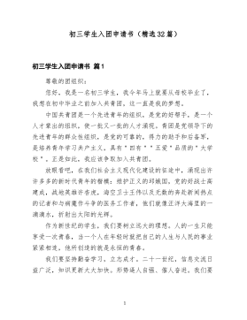 初一入团申请书格式范文(精选27篇)初一入团申请书格式范文篇1敬爱的团支部:通过团知识培训。对共产主义青年团有了更深一层的解,深切的体会到成为一名团员对我重要性。明白了成为一名团员要有要有足够的理想去实现团组织给我光荣任务。所以,足够的责任心。期待着组织能对我进行培养,早日成为中国共青团的一份子。中国共产主义青年团是前进的方向。更使我迫切要求加入的组织。共产主义青年团是当领导下的先进青年群众组织,也是党的可靠的党培养新一代革命人才的队伍。铁不锻炼不成钢,得力的后备军。人不磨练不健康”要培养自己成为一个健康的新世纪青年,就要经过团组织的考验迫切要求加入共青团。和自己的学习。因此。加入共青团根本不是爱面子的事儿,想。更不是想在同学之间炫耀什么,而是为了磨练自己让我能更上一层楼,同时,也一定会接受共产主义青年团组织毛泽东思想,教导及努力学习马列主义。邓小平理论,做到遵守团的纪律,执行团的决议,积极参与团体活动,做一个真正的好团员。当今的中国不再像当年那么困苦不堪。现在祖国正处于高速发展阶段,发展高科技事业是祖国未来的发展目标就需要我这些新一代的人去实现。虽然,而这个目标的实现。这个目标很遥远,但1只要经历了努力,就一定能够把未来的祖国建设成为社会主义强国。所以加入共产主义青年团是最迫切的要求。我担任班里的卫生委员,近两个学期以来。对工作力求完善,位奋发向上,尊师重道、遵守校规、保护班集体的学生。努力学习,成果优秀,课余立志把自己培养成为有理想、有道德、有文化、有纪律,时间我还时常阅读有意义的书。做到德、智、体、美、劳等全面发展的接班人,做一个共青团员的好典范。希望能早日加入中国共产主义青年团。入团后。坚决拥护中国共产党的领导,遵守团的章程,执行团的决议,履行团员义务把团的名誉放在首位,严守团的纪律。个人名誉得失放在次位,勤奋学习,积极工作,关心集体和国家大事,保护他人,力争做一名...