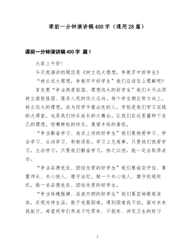 理想500字演讲稿_400字(精选30篇)理想500字演讲稿_400字篇1没有理想的人生是苍白的,没有理想的成长是无痕的。人生---只因有梦才精彩。-----题记多少的日日夜夜,脑海中总有一点儿东西,忽远忽近地,牵引着我、召唤着我,鼓励着我,于是,我努力前进,我跌倒又爬起,我隐藏起洋溢在脸上的阳光般笑容,我擦干流过我脸庞的辛酸的泪水,我拾起被嘲弄的破碎的自尊,无情的现实与神奇的梦想就如昼夜的交替一样,这一切完全归功于它——成长路上一直陪伴我的理想!如果说生活是撒哈拉沙漠,那么理想就在心中不停地描绘的绿洲,而我们也因此坚持不懈地精彩的活下去。看--是理想,天上--人间,都是他遥遥引导,让我们只是向前飞,不肯回头一顾.而看到的只是飘飘云发,飒飒天风;如何--如何,把积压的思想发落到纸上,仍坚信,理想就在眼前.对,这就是理想的魔力.它让贝多芬摆脱双目失明的痛苦,弹奏出最精彩的乐章;它让爱因斯坦用常人难以想象的努力发明了种种,发现了种种,成为伟大的物理学家;它让玛丽.居里克服艰苦,拼命为科学事业而奋斗,获得诺贝尔奖;它让编成巨著《本草纲木》的李时珍在艰辛的岁月里爬山涉水,尝遍百草,放弃最美的青春年华,去完成一个遥不可即的梦……1它同样也牵引了我的梦,牵引了我的生活,那是小学时的一次演讲比赛,一向红的发紫的我惨遭失败,走下讲台时,我昏昏沉沉,心里早已哭成了滂沱,感觉自己被逼到了一个阴暗的、潮湿的,长满苔藓的角落里.我绝望地望着那乌云密布的苍穹,我想我完了。可是,就在这一瞬间,一刹那,我清楚地看到身上的一缕阳光.于是,我牢牢地抓住,紧紧地攥在手里,放在心里.然后,抖落身上的杂草,倔强地昂起头来,“天生我才必有用.”是啊,我并非一无是处.因为我还有梦想.它不会说话,不懂聆听,却如海潮般,一次次漫湿我那颗枯涸的心.让我向前飞,飞向人生的太阳。现在我迈进了初中的大门,这一路上学习的竞争、压力...