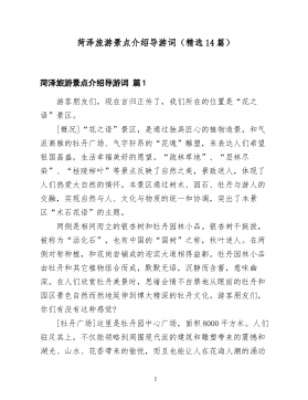 黄山英文导游词江段版(精选14篇)黄山英文导游词江段版篇1Dearfriends,nowwehavebeentohuangshan,pleasepayattentiontowatch.Thehuangshanmountain,thehighestlotuspeak,1864metershigh,notthesecond,1841metershigh,tiandufengthird,1829.5metershigh.Inthehuangshanpines,rocks,seaofclouds,hotspringsareveryfamous.,thereisapinetreeiscalledavisitor,becauseitsposturelikeingreetedherguests,socallitavisitor.Thereisapoem:"itsreturnfrommountain,mounthuangshanreturnfromyue."Explainsthebeautyofhuangshan.Huangshanhotspringcancure,butcan'tdrink,pleasenote!Note:whenclimbingthemountain,ifit'sraining,don'tbeanumbrella,mountains,theupperhand,carefulumbrellabecomesaparachute,letthewindblowyouaway!Pleasedon'tthrowstonesdownthehill,becarefulonpeople!Pleasewalksteps,don'tgowherenosteps,oryou'llfalloff!Pleasedon'trun,onethousandlosttheirway,youmightbec...