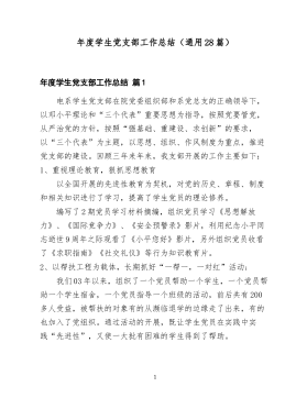 党支部工作总结报告范文(通用28篇)党支部工作总结报告范文篇1今年上半年以来,我们党支部的支持下,党委的正确领导和团的领导机关,坚持了_的指导中国特色社会主义意识形态的新时代,彻底实现了19党的精神,实现党的要求严格管理的全面,积极组织开展“不忘初心,牢记使命”主题活动。为建立学习型党组织,围绕年度重点工作,积极推进政治思想建设、组织建设、作风建设、廉政建设和队伍建设,推动各项档案工作顺利开展,并取得了一定成绩。其摘要如下:1、主要业绩及做法1.加强组织建设,全面加强党的基本建设。首先,加强。系统建设。根据路政工作实际,先后制定了年度工作计划、学习计划、三会一课制度、党员民主评议制度等工作制度和职责。第二,及时召开党员大会和支部大会,讨论党的建设工作和业务工作,保证支部委员会工作的正常开展。2.我们将坚定不移地开展“不忘初心,牢记使命”的教育活动。按照党委安排的主题教育和学习的“永远不要忘记最初的思想,牢记使命”,宽系统的实施计划主题教育”永远不会忘记最初的思想,牢记使命”,我们的分支机构,按照距离和便利的原则,和中国共产党的第一个党支部,共同建立了革命传统教育,党的精神和形势方针,重温了入党誓言,缅怀了革命先烈,接受了党的精1神洗礼。结合主题教育“永远不要忘记你最初的思想,牢记你的使命”,我们将组织活动,如“开放日”,“1+1+-”主题派对,“提升基准测试和定位”,确保学习效果,统一的思想和意志,和行动的一致性。反对形式主义和官僚主义,是专题教育的重要内容。教育和引导党员干部牢记党的宗旨,坚持实事求是的思想路线,树立正确的政绩观,切实转变作风。3.加强政治工作学习,提高队伍素质和党员素质。党支部制定了党员的学习计划和部门的“学习和教育系统”,组织党员学习党的精神的19和_系列演讲,党章,和有关文件的精神构建一个政府廉政和反腐败工作,并组织大家集中精力看刘Chuanjian...