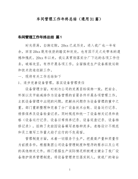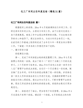 关于车间主任年度总结范文集合(精选32篇)关于车间主任年度总结范文集合篇120xx年即将过去,又迎来新的一年,回顾车间这一年来的工作,车间在公司领导班子的正确领导下,紧紧围绕生产为中心,克服诸多困难因素,不断强化车间基础管理工作,狠抓落实,经过全体车间员工的共同努力,车间的综合管理工作一直处于正轨。车间在公司和生产部的正确领导下,在车间员工的共同努力下我们圆满完成下达的生产任务,并且在这生产过程中我们取得了良好的业绩,但是也存在一些需要我们在以后工作中注意的问题。在新的一年里,我们必须保持在13年已经取得的业绩,使各方面工作能得到进一步完善。对于我们来说,安全生产就是根本。认真贯彻公司各项任务,严格执行工艺纪律、劳动纪律和考核目标是我们的职责。以科学的方法进行操作,及时掌握分析数据,在确保合格的前提下,节能降耗、提高效率是我们的任务,以下是我们对全年工作的总结汇报。今年以来,车间始终把满足下道工序生产需要作为重要任务,求真务实,开拓进取,以“提品质、降消耗、保证一致性”为工作目标;以公司质量提升规划工作为契机,真抓实干,稳定和提高产品一致性质量,加强提高一次合格配组率,认真抓好生产组织,保障产品的供应市场;生产安全工作常抓不懈,吸1取教训,做到警钟长鸣;增强车间内部协调,理顺各种关系,强化管理,各项基础工作开展的有声有色,得到明显提高。车间针对设备杂、技术要求严格、操作人员素质不高等突出矛盾,以积极的心态寻求解决办法。通过优化内部资源配置,始终不渝坚持以人为本、抓好员工队伍建设;强化工资考核,层层落实责任,不断规范员工的操作行为;正确教育和引导员工,增强员工对企业发展的信心。通过一系列举措,使员工队伍得到稳定。1、发动鼓励大家在工作中或工作之余,操作技术上用心琢磨,理论上熟记操作规程,培养个人独立操作能力,保证不发生误操事故。2、时常在工作中遇到的问题和取得的经验、注意的事...