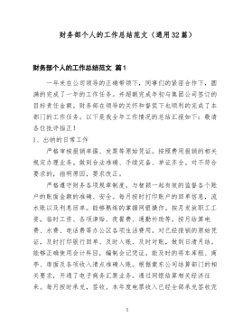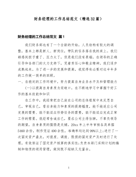 财务科长个人年度工作总结范文(精选33篇)财务科长个人年度工作总结范文篇1财务科紧紧围绕公司工作中心,认真组织会计核算,规范各项财务基础工作,并通过加强财务制度、内部控制制度的建设,站在财务管理和战略管理的角度,以核算为中心,资金为纽带,不断提高财务工作质量。一、严格遵守财务会计制度和税收法规,认真履行职责,组织会计核算:财务科的主要职责是做好会计核算,进行会计监督。财务科全体人员一直严格遵守国家财务会计制度、税收法规,认真履行财务工作职责。从审核原始凭证和会计记账凭证的录入到编制财务会计报表,从各项税费的计提到纳税申报、上缴,从资金计划的安排到款项的结算支付,每位财务人员都勤勤恳恳,任劳任怨,努力做好本职工作,认真执行会计制度,实现了会计信息收集、处理和传递的及时性与准确性。二、近年来,随着企业的发展壮大,管理水平的不断提高,对财务管理业提出了更高的要求。以此为契机,根据财务管理的特点以及管理的要求,制定了岗位职责、财务核算制度、内部控制制度,从而使得每项工作有计划、有落实、有监督、有考核,使每个财务人员的规范意识得到了进一步的增强。1三、严格执行财务制度,规范财务行为,加强财务核算,严格财务监督,杜绝不合理支出,加强应收款项的回收,尽量减少不必要的开支,为企业增收节支、提高经济效益把好关。四、不断提高财会人员的业务水平:随着经济建设的不断发展,财务会计工作的侧重点和基本点也在随之而改变。因此财务会计工作不能停留在简单的算账报账等会计核算上,应不断更新知识,不断提高理论水平。结合本行业财务工作的特点,认真进行工作总结,吸取经验,查找不足,保证财务基础工作的准确、及时和完整。这就要求会计人员除认真参加会计局组织的会计人员继续教育培训外,还要抽时间学习相关的专业知识,学习新的法规,适应新的工作需求。五、密切配合各科室的之间的工作,保障供热工作顺利进行:配合用户发展中心,对20...