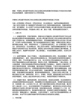 编辑:开展用人单位遵守劳动用工和社会保险法律法规情况专项检查工作总结为范文海网的会员投稿推荐,但愿对你的学习工作带来帮助。开展用人单位遵守劳动用工和社会保险法律法规情况专项检查工作总结为进一步贯彻落实《劳动法》《劳动合同法》《社会保险法》《省劳动保障监察条例》《省工资支付条例》和《省高温天气劳动保护办法》等劳动保障法律法规,构建和谐劳动关系,按方案要求,市人社局于今年在全市范围内开展用人单位遵守劳动用工和社会保险法律法规情况专项检查,共检查用人单位X家,查出X问题,现将检查情况总结如下。一、主要工作(一)加强组织领导,积极开展宣传。我局对此次开展的用人单位遵守劳动用工和社会保险法律法规情况专项...