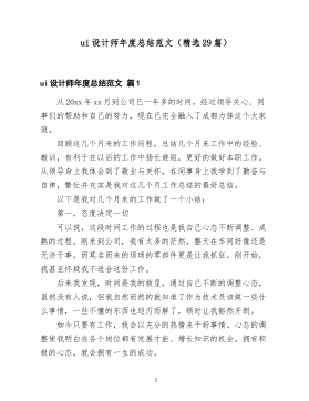 建筑设计师工作总结(精选32篇)建筑设计师工作总结篇1第一次到公司实习,刚来的时候心理很没底,不知道怎样与别人相处。实习几天后发现,与同事相处并不难。当你遇到不明白的地方时,你就要多问,习几天后发现,与同事相处并不难。当你遇到不明白的地方时,你就要多问,在问的同时,就增添了你和同事交流的机会,这样,不仅问题解决,在问的同时,就增添了你和同事交流的机会,这样,不仅问题解决,也很快融入了集体。在这里,要勤学好问,多与人交流,要以诚待人。入了集体。仅仅是一种社会经验,更是我人生的一笔财富。更可喜的是我在实习期间还结识了一些好朋友,他们给予我不少的帮助。俗语说:喜的是我在实习期间还结识了一些好朋友,他们给予我不少的帮助。俗语说:纸上得来终觉浅。没有把理论用于实践是学得不深刻的。上得来终觉浅。没有把理论用于实践是学得不深刻的。当今大学教育是以理论为能有机会走进设计公司去实习,对我来说是受益非浅的。主,能有机会走进设计公司去实习,对我来说是受益非浅的。我就快毕业走向社会了,相信这次实习对我日后参加工作有帮助。通过这次实习,在设计方面我感觉自己有了一定的收获。通过这次实习,在设计方面我感觉自己有了一定的收获。实习主要是为了我们今后在工作及业务上能力的提高起到了促进的作用,1我们今后在工作及业务上能力的提高起到了促进的作用,增强了我们今后的竞争力,为我们能在以后立足增添了一块基石。实习单位的王工王工也给了我很多机争力,为我们能在以后立足增添了一块基石。实习单位的王工也给了我很多机会参与他们的设计是我懂得了很多以前难以解决的问题,会参与他们的设计是我懂得了很多以前难以解决的问题,将来从事设计工作所要面对的问题。这次实习丰富了我在这方面的知识使我向更深的层次迈进,实习丰富了我在这方面的知识,要面对的问题。这次实习丰富了我在这方面的知识,使我向更深的层次迈进,对我在今后的社会当中立足有一定的促进...