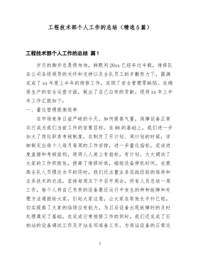 工程师初级职称个人工作总结(精选3篇)工程师初级职称个人工作总结篇1本人自工作以来,我勤学好问、刻苦钻研,认真总结解决实际施工中的经验,使我很快就掌握了工程设计图纸、工程施工技术要求和基本操作技能,并开始独立工作。参加工作以后,本人坚持学习专业理论基础和专业知识,同时又能认真总结解决实际施工中的经验,使我很快就掌握了专业知识。通过二十几年来的工作,我已累积了一定的工作经验,熟练的专业操作技能。在工作中能够正确处理好国家、企业、个人三者的关系,协同公司全体同仁在建筑市场中,自加压力求开拓、造就优势挖潜力、注重绩效保信誉、瞄准目标齐拼搏,夯实根基再发展。来到佳诚建设的这几年我参与公司三个大工程项目分别是1、20xx年2月-20xx年7月榆商线榆林至绥德高速公路路基桥隧工程施工N7(K49+700~K61+800)全长12.100KM,其中桥梁1879m,工程造价22827万元,担任技术员,在工程师的指导下负责现场施工的管理工作,监控现场进度、品质完成情况,负责日常安全管理事项。工程质量合格。2、20xx年9月-20xx年2月大和路(观澜大道梅观高速)改造工程第一标段(K0+060~K1+211.745),工程造价约3559万元,担任1技术员,在工程师的指导下负责现场施工的管理工作,监控现场进度、品质完成情况,负责日常安全管理事项。工程质量合格。3、20xx年4月-至今沥港互通至大浦口段(K3+000-K8+935),全长:5.935Km(其中燕子窝岗墩隧道左幅长度为1240m,右幅长度为1203m),16150万元,担任技术员,在工程师的指导下负责现场施工的管理工作,监控现场进度、品质完成情况,负责日常安全管理事项。工程正在正常施工中。经过多年的实践,本人取得一定成绩,对公路工程施工有一定的了解。但还存在着不少缺点,今后我将从缺点中看到发展的方向,从缺点中找到差距,缺点和差距将...