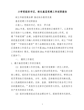 支部书记、校长履行职责情况述职报告立足教育实际开创质量先列我名叫xxx,中共党员,本科学历,一级教师。xx年x月被xxxx支部书记、校长。现就一学期履行职责情况汇报如下:一、思想素质业务能力方面1.加强学习,廉洁奉公、依法执教.一学期以来,我能带领班子成员和全体教师,认真学习党的教育理论和法规,每周例会时间,集中安排10分钟时间组织政治学习.在个人工作中,廉洁奉公,制定一系列规章制度,并做好表率;严格履行法律法规,做到依法办学,要求教师依法执教.2、继承创新,推动学校持续发展.排厦小学是一所有着悠久历史和辉煌成就的学校,因此,在工作中,我积极吸纳历任校长的成功经验,在此基础上,又积极探索推动学...