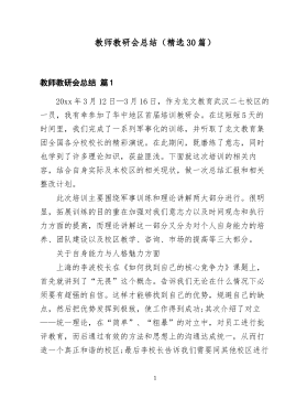 精选教师工作总结(精选32篇)精选教师工作总结篇1时间过得真快,转眼学期就结束了。为了在以后的工作和教学中不断提高自己,有必要对这一学期的工作进行复习。本学期从事3(1)和3(2)教学。在工作中要坚持全勤,全职工作,兢兢业业,为人师表,积极参加各种政治和业务学习,努力成为一名合格的教育工作者。主要教学工作总结如下:1.教师。认真分析研究最近三年的考试说明,研究三到五年的中考试题和各地的模拟试卷。这样做的目的是为了更好地把握中考特点,使复习能把握全局,突出重点,在主要知识点上多花些时间和精力,避免力度的平均使用。2.一些值得注意的细节。①注重解题格式的训练。很多学生的格式混乱,方程不规范,充满数学符号等等。这些问题都要及时纠正,否则会丢分。(2)备课时,精心设计问题,深入提问,逐步深化,使学生的思维既有深度又有广度,充分利用学生对因果关系感兴趣的心理特点,让学生积极思考,提高课堂效率。③不要完全放弃课本,注意回归课本,尤其是热、光、原三部分,要强调学生的阅读。1④加强多媒体的应用,将难以理解的物理过程动画化,提高效率,降低难度。⑤愿意花时间让学生在课堂上思考,而不是死记硬背。3.注重理论联系实际的分析和训练。现在的中考越来越注重理论与实验相结合能力的考查。每一章都有这样的题目,我注意挖掘,尤其是电气部分。这样的题目很多,中考的考查率也比较高。4.特别注重学生能力的培养。把中考对能力的考核放在第一位,通过对知识及其应用的考核来识别学生的中等或低能力。说明书明确告诉我们要考察学生五个方面的能力,即理解能力、推理能力、综合分析能力、应用数学处理物理问题的能力、实验能力。总之,高三物理的复习是一个系统工程,还有很多值得研究的地方,可以更好的提高高三物理的复习。精选教师工作总结篇2市政府教育督导组:按照周口市人民政府办公室《关于开展全市中小学教师队伍建设情况督导检查的通知》要求,我县成...