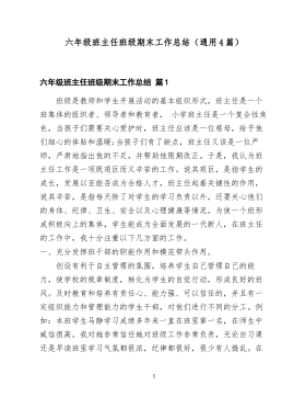 五年级班主任第二学期班主任工作总结范文(精选3篇)五年级班主任第二学期班主任工作总结范文篇1时光飞逝,岁月如梭,不知不觉中度过了一学期,回想一学期走过的路可谓酸甜苦辣,忙忙碌碌。为了搞好本班的班风、学风,促进学生全面发展,提高学生多方面的素质,本着爱每一个学生,使他们因为有我这样的班主任,每天能快乐充实;同时让他们在获取书本知识的同时还学会了做人。具体工作如下:一、自身做示范德高为范。教师为人有其“育人”的特殊功效,古人云“其身正,不令而行;其身不正,虽令不从”,教师要有这样做人的威望,人格的力量,令学生所敬佩。教师又要以自身最佳的思想境界、精神状态和行为表现,积极的影响和教育学生,使他们健康地成长,在学生面前树起一座做人的丰碑。二、待生要诚对学生真诚、坦诚和热诚,核心一个“爱”字,爱是教育的基础,没有爱就没有教育,也谈不上师德。用博爱之心与学生真诚互待,坦诚相处,热诚帮助,在深爱着全体学生的同时,更格外关注着个别学生,多给他们爱的阳光雨露,滋润他们茁壮成长、三、公平待生1对人公道,公道是做人的公德,也是为师的美德、对待学生首先看的要公,不夸大,不缩小,不偏不倚、说的要公,做到情之殷殷,言之凿凿,不因人而厚是非,尊重学生,一视同仁、不管对那位学生都献上炽热的心,倾注满腔的爱,对差生做到不记前嫌,用发展的眼光去对待,鼓励他们放下包袱轻装前进、四、基本工作要点1、向学生进行思想品德教育,端正学习态度,明确学习目的。提高学习兴趣,使学生主动学习,提高学习成绩。2、鼓励学生大胆创新,勇于探索,为祖国培养创新性人才。3、向学生进行行为习惯养成教育,使学生成为有礼貌、讲文明、守纪律、讲卫生的好学生。4、积极参加学校组织的各项活动,使学生在活动中受到教育。5、健全班委会,明确分工,提高学生的管理能力。总之,这学期,经过师生的共同努力,学生的各个方面有了可喜的进步。也形成了一个团结互助、积...
