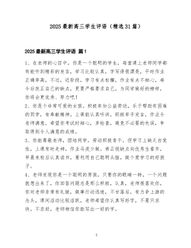 2025小学生期末评语五年级(通用31篇)2025小学生期末评语五年级篇11)老师惊喜地发现,以前的“小花猫”不见了,现在的你也开始讲卫生了。你瞧,即使很多同学对你有意见,但老师还是能在你身上发现优点,说明你也是个可爱的孩子。老师给你一个方法来改掉你身上的缺点好吗?那就是:认真。认真完成作业认真听讲认真思考,按照老师的方法去做吧!你一定会成功,老师相信支持你。2)你是一位天真活泼可爱的孩子,可是不知道为什么,每次你都会玩得忘了时间,上下课放学后都一样。每当老师看到你那双充满了表现欲的眼睛,总不免替你感到惋惜,只要你上课认真听讲,回家认真完成作业,老师相信,你一定能够在老师面前表现出一个完美的你!加油吧!3)你是个聪明又可爱的小男孩,认真学习,作业及时完成,热爱劳动,热爱集体。如果你今后上课时不做小动作,做作业不粗心大意,老师相信,在不久的将来,老师一定能看到一个更出色的你。4)你是一个聪明机灵的小男孩,只是课堂上自由散漫,从不完成作业,字迹潦草,成绩不理想,老师知道你并不愚笨,只是对学习缺少信心。贪玩占用了你很多时间,爱玩虽不是缺点,可1是贪玩却会影响你的进步。希望你在学习上多下点功夫。我相信你定能取得好成绩,你说对吗?5)知道吗,最近,你的进步可真大啊!你的每一点进步,老师都为你感到高兴。每次老师表扬时,总有你的名字。你的漂亮的字迹,你那高高举起的小手,你那正确无误的回答,都让老师深切地体会到你在越变越好!继续加油,你将会时最出色的!6)你是个性格极其内向的孩子。你并不比别人差,只因你老是闭着嘴不说话。为什么总是那么胆小?缺乏自信,你已失掉了不少成功的机会。老师希望你以后大胆些,主动些,你会进步的,能做到吗?7)你是一个很有主见的小男孩,老师知道你的理想是做个“伟人”。可“伟人”不是每个人都能做到的。你要实现理想,必须从小事做起,无论做什么事情都必须勤奋努力。可是,你好好...