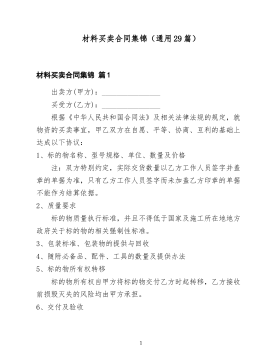 材料加工承揽合同(精选28篇)材料加工承揽合同篇1定作人:(填写全称)___________________承揽人:(填写全称)___________________根据《_____》及有关规定,为明确定作人与承揽人的权利义务关系,经双方协商一致,订立本合同。第一条定作物情况(如有其它约定内容可另设合同附件,写为见合同附件一)1.1品名:(应填写定作物的名称,不可用其简称或俗名代替)1.2规格:(应写明定作物具体的规格型号)1.3数量:(具体写明定作物的数量,并注明单位)1.4备注:(如无内容,在空格处划线)第二条合同价款2.1合同价款总额:(应以大、小写两种形式填写,并注明币种)2.2付款方式:(应详细写明是分期付款还是一次性付款或其他方式)2.3付款时间:(写明年、月、日)第三条加工成品质量要求及技术标准:3.1质量要求:(应明确填写要达到的质量标准是国标还是行业标准,必须要写全称)13.2技术标准:(技术标准如硬度、强度、韧性、抗腐蚀、抗氧化等各种物理化学参数)3.3以封存样品为质量标准的,应当由双方代表当面封签,并妥为保存。第四条原材料的提供办法及规格、数量、质量4.1用承揽人原材料完成工作的,定作人有权对原材料进行检验。承揽人隐瞒原材料的缺陷而影响定作物的质量时,定作人有权要求重作、修理、减少价款或退货。4.2用定作人原材料完成工作的,定作人按下表标准提供:材料名称规格型号计量单位数量质量提供日期消耗定额单价(元)总金额(注:如空格不够用,可以另设合同附件,写明见合同附件二)4.3定作人于_______年_______月_______日之前提供原材料。(注:分批次提供的或按工序要求提供的,可具体化)24.4承揽人收到定作人提供的原材料之日起日内检验完毕,不符合要求的,应在收到后日内通知定作人调换或补齐。承揽人对定作人提供的原材料不得擅自更换,对修理的物品不得偷换零...
